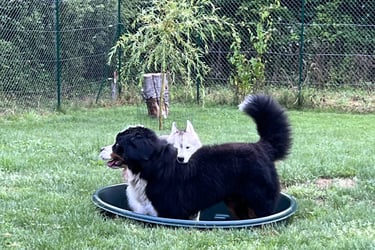 🎾 DE VRAIES VACANCES, PAS JUSTE DE LA GARDE : Accès quotidien à 2 grands parcs ombragés, Activités variées : piscines, jeux de fouille, stimulation mentale ; Socialisation réfléchie en groupes compatibles ; Suivi individualisé selon le rythme de chacun